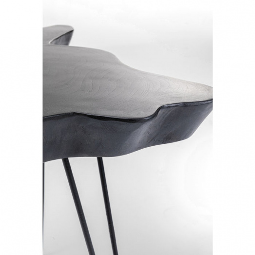 Tischplatte: Teak Massivholz gebeizt-lackiert, Fuß: Stahl pulverbeschichtet, JEDES STÜCK EIN UNIKAT