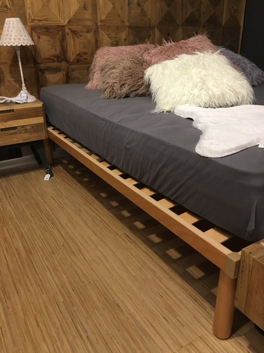 Rückenteil Holz massiv (285x4x117cm) mit Bettgestell und Lattenrost