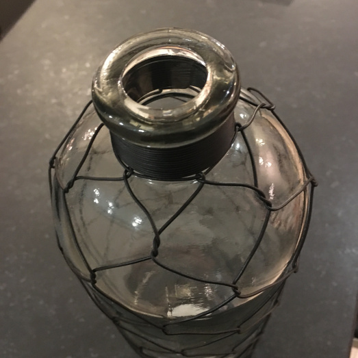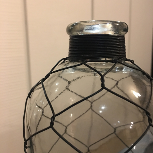 Glasvase mit Netz aus Draht