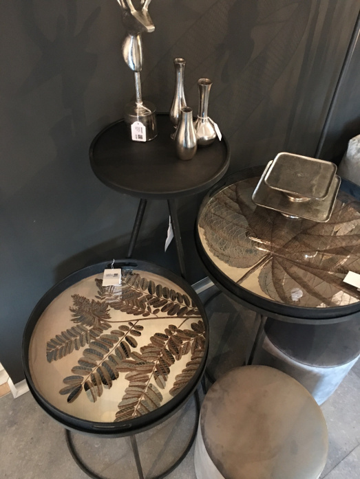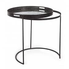 Tablett: Holz/Glas ; Fuß: schwarzes Holz